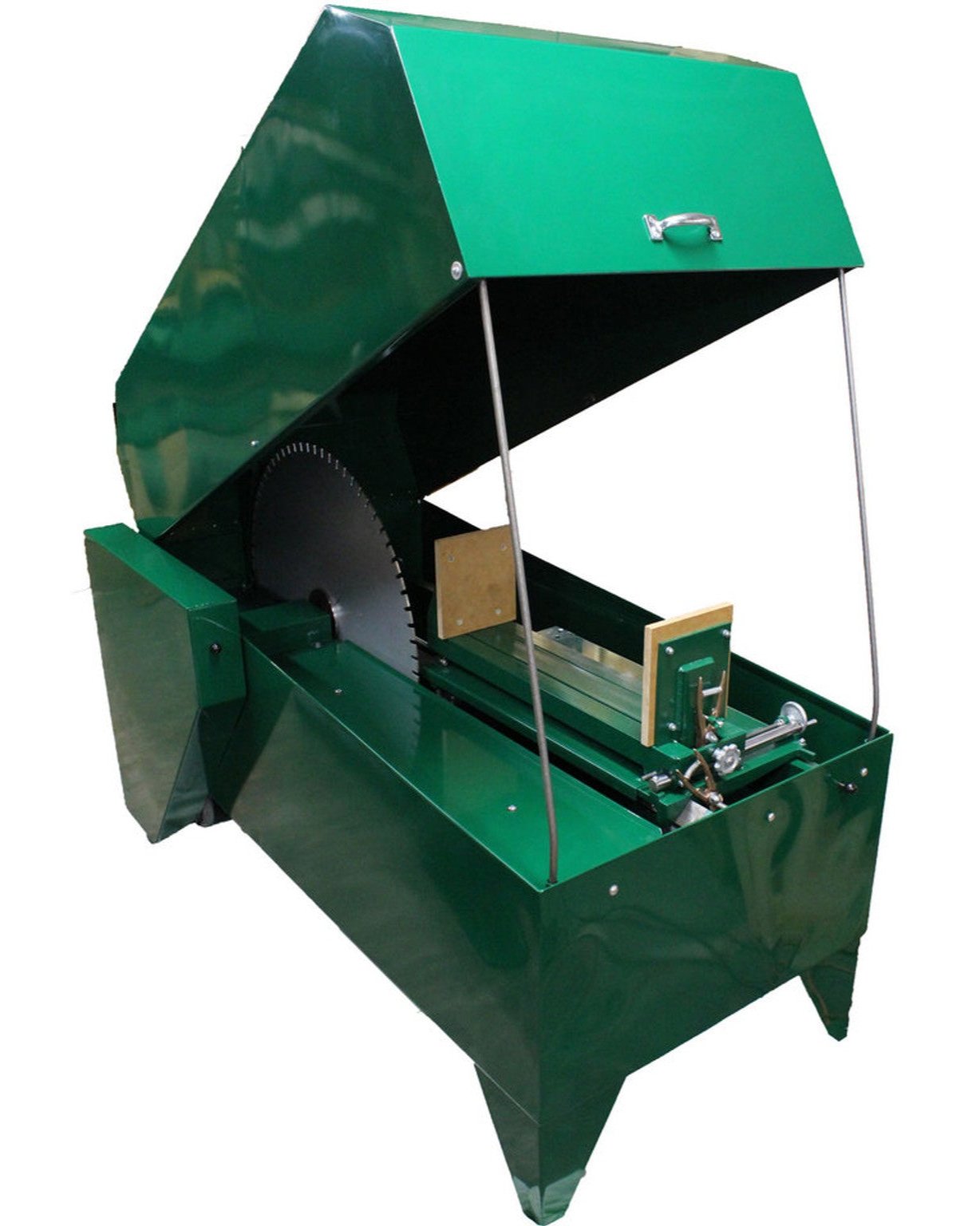 Covington's Slab Saws are heavy duty floor models designed to cut glass and stones. This is an immersion style saw meaning the cutting fluid sits inside the tank and the spinning blade will bring the cutting fluid up and around to the piece. Covington powder coats the saw tank, hood and chassis for durability and longevity. An x-pattern strengthening rib ensures that the tank unit is square and the hood sits properly. The hood fits neatly inside the tank eliminating leaks. The hood can be propped open with a sturdy, steel prop arm for easy loading and unloading of pieces.