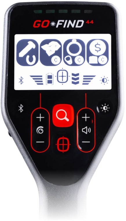 Five large, easy-to-see lights on the display show what's below your coil. Red lights indicate trash, while green lights indicate treasure.